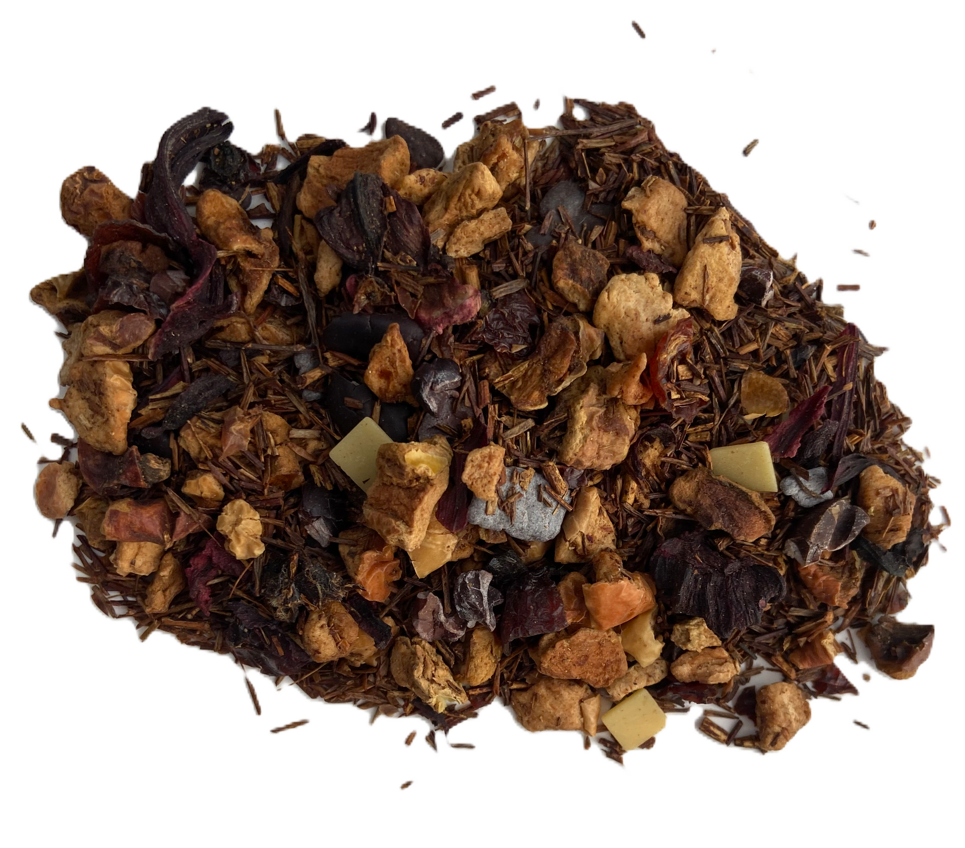 Ingredients: Apple, Cacao Beans (Organic), Chocolate Bits, Chocolate Flavor (Natural), Cream Flavor (Natural), Hibiscus (Organic), Rooibos (Organic), Rose Hips (Organic), Strawberry (Organic), Strawberry Flavor (Natural), Vanilla Flavor (Natural), White Chocolate Bits
